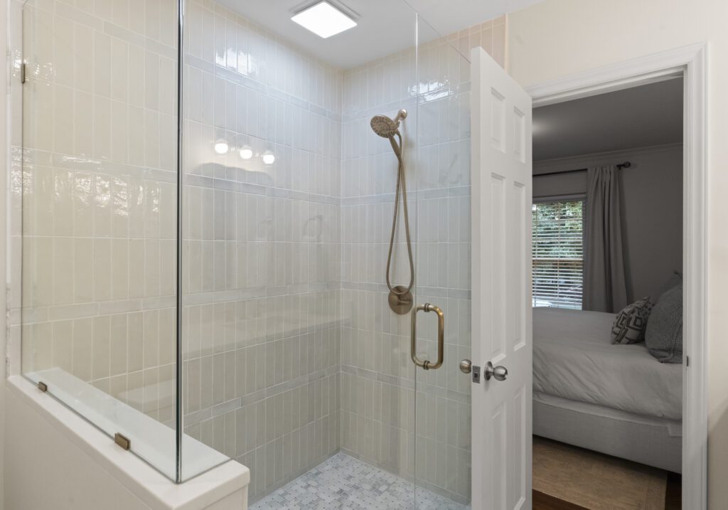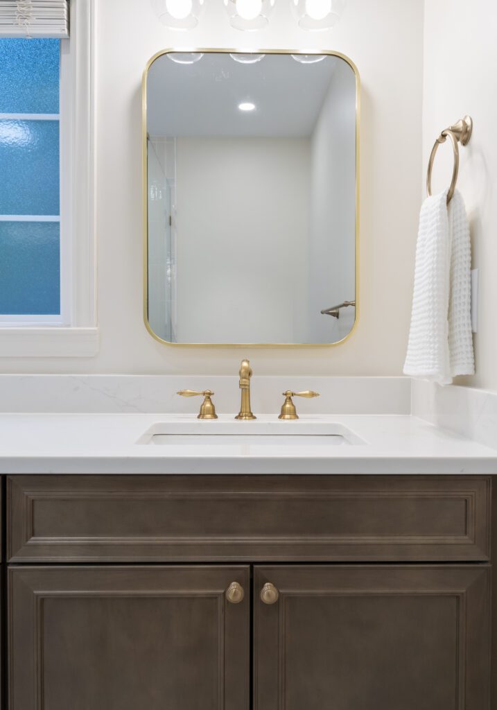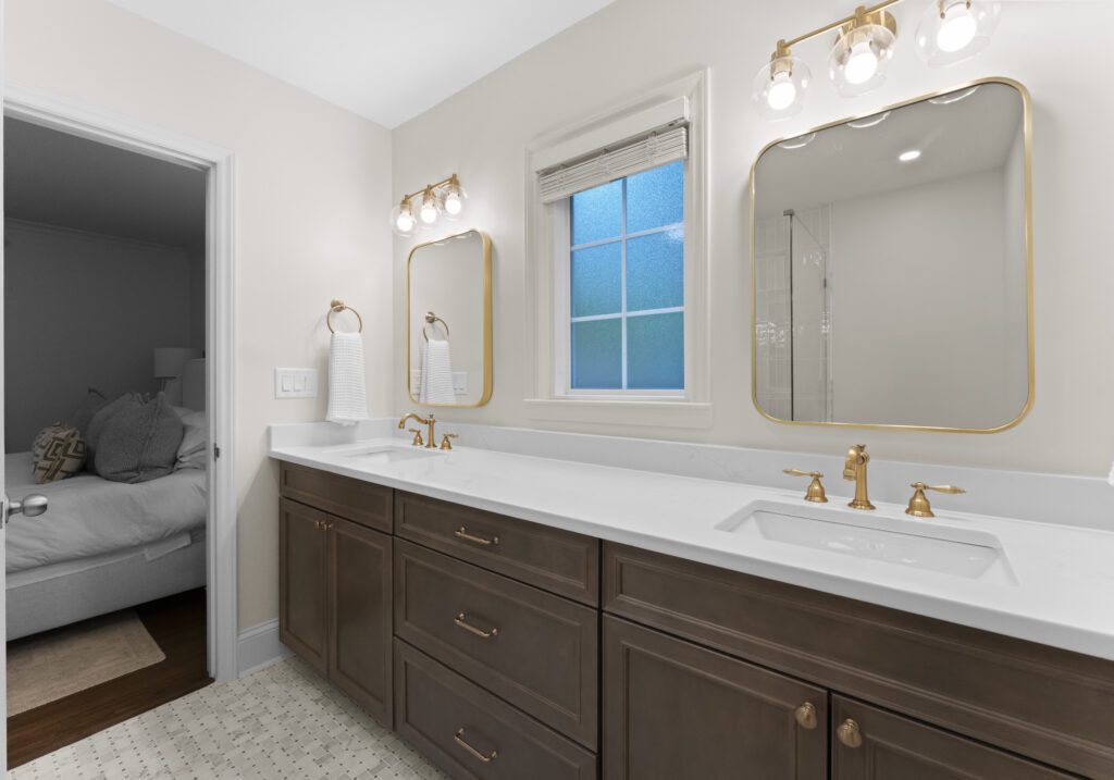 Burlwood Road This bathroom renovation, expanded the size and made the space high end, bright and eye catching with more storage and counterspace.