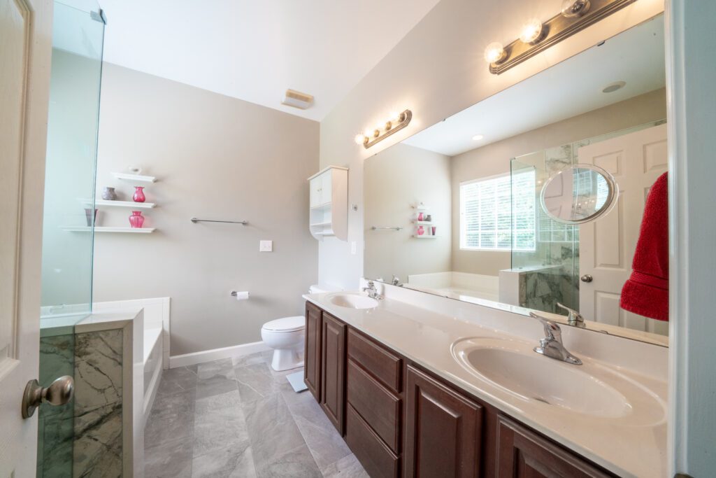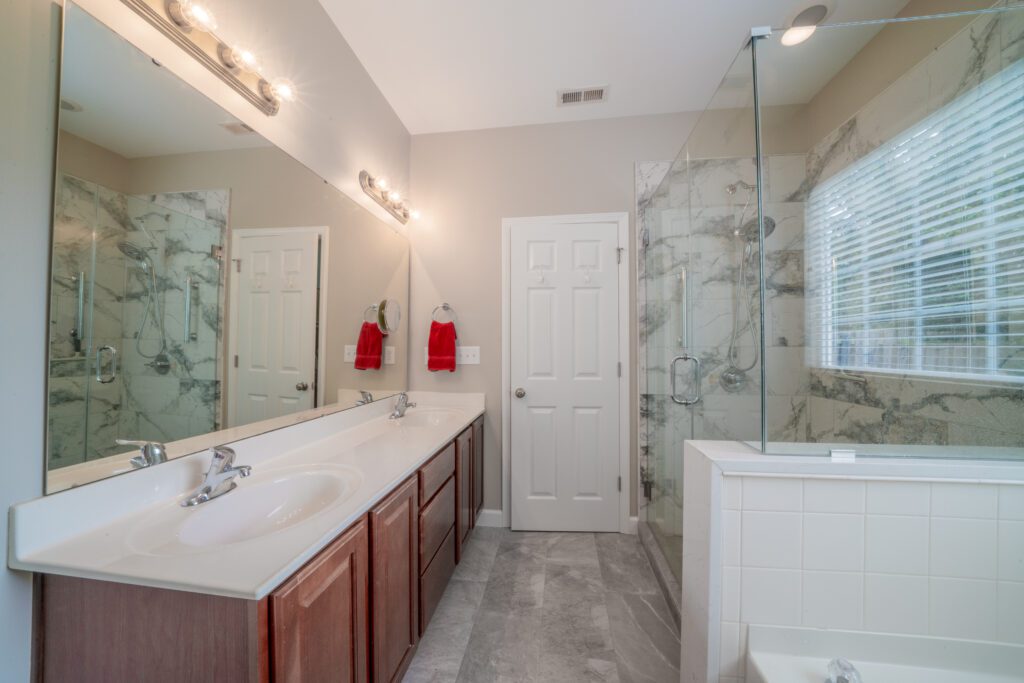 Carrington Ridge House 2 TGA designed a massive, stunning marble shower to bring elegance to this owner’s bathroom. The team also put in a double vanity as well to make the space more functional.