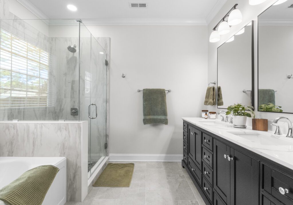 Double vanity installation; Designer tile work; Custom cabinetry installation